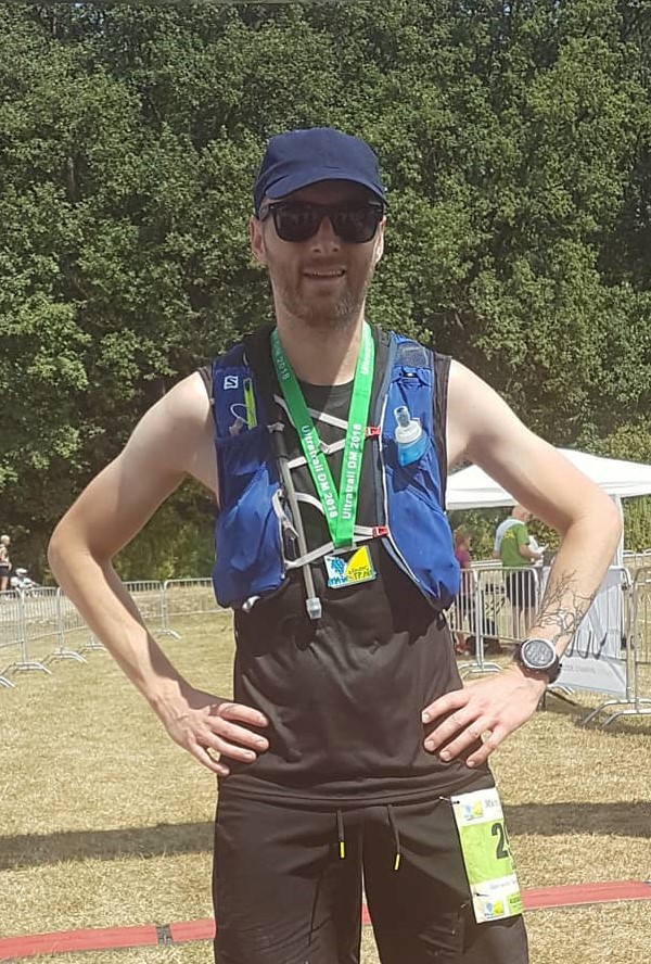 14 juli 2018 om 7 uur ’s morgens was het dan zo ver, daar stond ik dan als nieuwkomer in de ultra wereld. Omringd door duidelijk meer ervarener ultralopers liet ik me niet intimideren. Let’s give this our best shot! Het was heet die dag, veel te heet. 30° stond op de thermometer, een temperatuur waarmee ik als simpele waaslander niet kan omgaan. Na het startschot waren we los, de eerste 20 km puur genieten met vloeiende trails en een vlotte groep lopers. De eerste bevoorradingspost vlogen we als raketten binnen, waarop de vrijwilligers ons al waarschuwden “Niet vergeten, het is nog 40 km tot de finish!” “Maar het voelt toch zo goed aan, dit tempo!” – Iets wat ik later in de race spijt van zal hebben. De temperaturen klommen omhoog, het werd warm – extreem warm. Dan ging het mis, als rookie wist ik niets van de nodige voeding en hydratatie. Alles gebeurde op het gevoel. 36 km in de race kwam de verwachte “Bonk” – Het werd een gesleep naar de volgende hulppost. De ene na de andere loper gaf op. Zittend op de grond, dacht ik aan hetzelfde… “Ik kan hier gewoon opgeven, misschien is dit toch alles te zwaar voor mij?” “Neen! Voor geen geld! – Sta op en loop naar de volgende post!” – Dat werd de mentale tactiek voor de volgende 24 km, lopen van hulppost naar hulppost. Na 55 km begonnen de getallen op de bordjes ook in eenheden tevoorschijn te komen – Nog 10km – 9km – 8km – Wonderbaarlijk wat het lichaam kan, mijn snelheid ging weer naar omhoog! “Nog een korte sprint en we hebben het gehaald!”