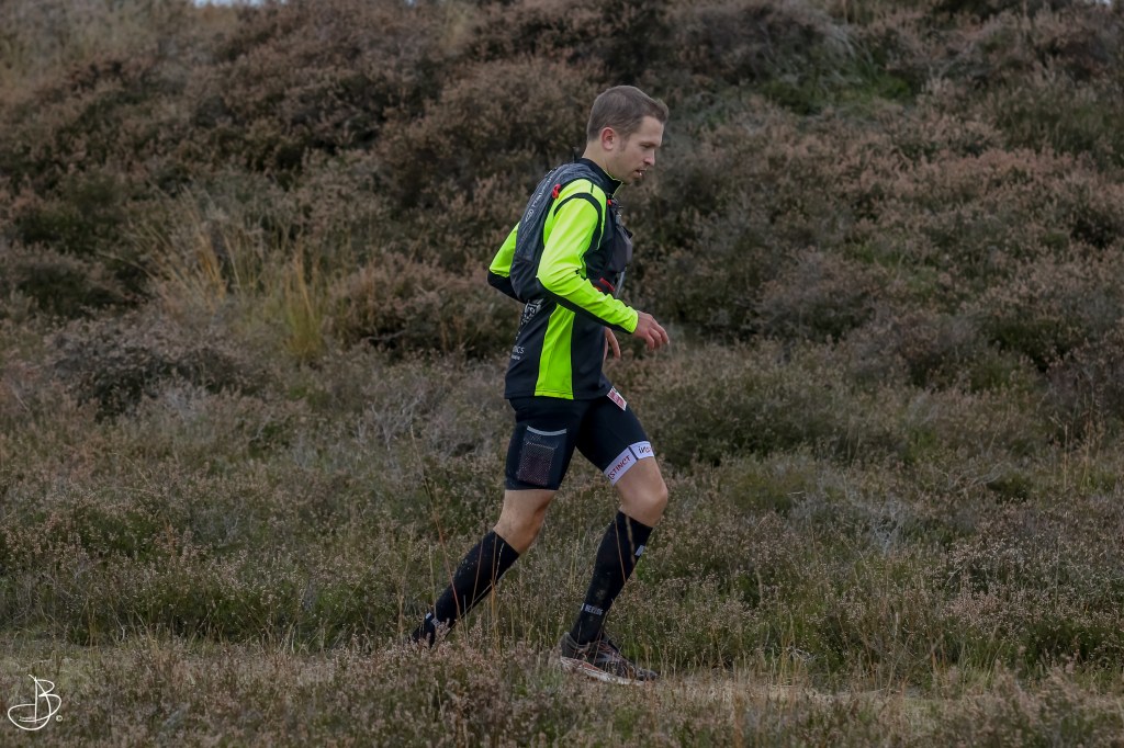 Een reis door een uitgestrekt Drenthe werd het. 95 % van het parcours was onverhard. Er werd gelopen over bospaden, door moerassige gebieden, over duinen en door weilanden tussen schapen en koeien. Het was wel een ideale ondergrond om “zacht” te lopen, goed voor die blessure (voelde voor mij althans beter aan).